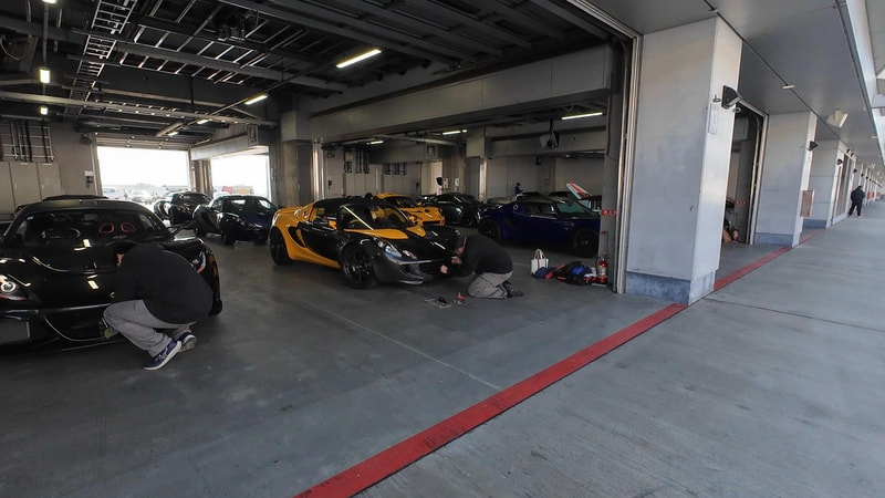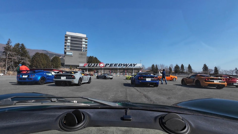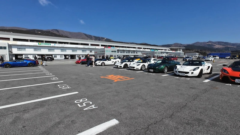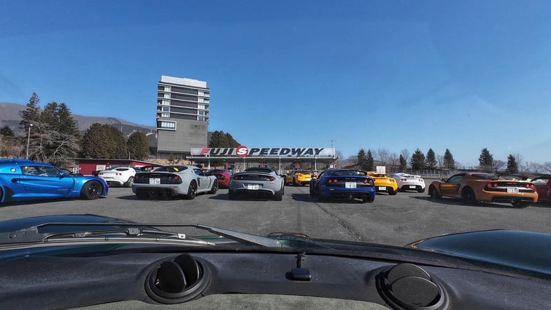 途切れることなく続く色とりどりのロータスの列が、富士スピードウェイのゲートを次々とくぐる。